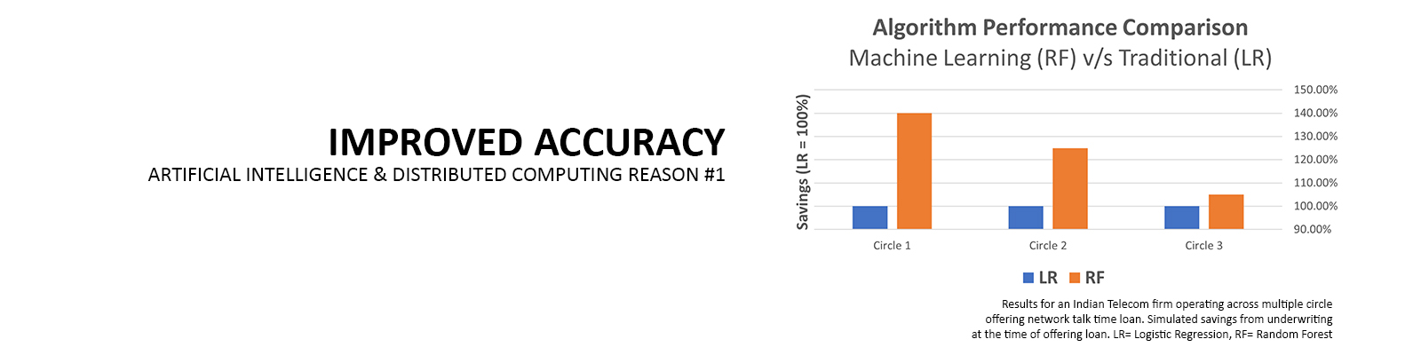 Even if companies do not feel their businesses need/ are ready for the advanced machine learning algorithms, we believe they can benefit from the increased accuracy and lower turn around time. As an example, we have seen accuracy improvements of 2 to 5X and execution time deflation of 10-50X when applied to real-life business problems.